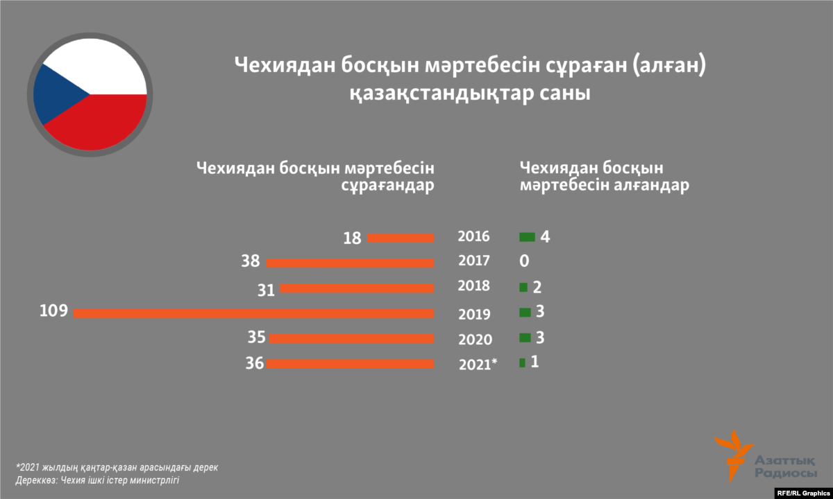 Ал Чехиядан босқын мәртебесін алғысы келген Қазақстан азаматтарының саны 2019 жылы күрт өскен. Мәселен, 2018 жылы 31 қазақстандықтан өтініш түссе, 2019 жылы 109 адам босқын статусын сұраған. Ресми Прага әр жылдары 3-4 адамның ғана өтінішін қабылдаған.